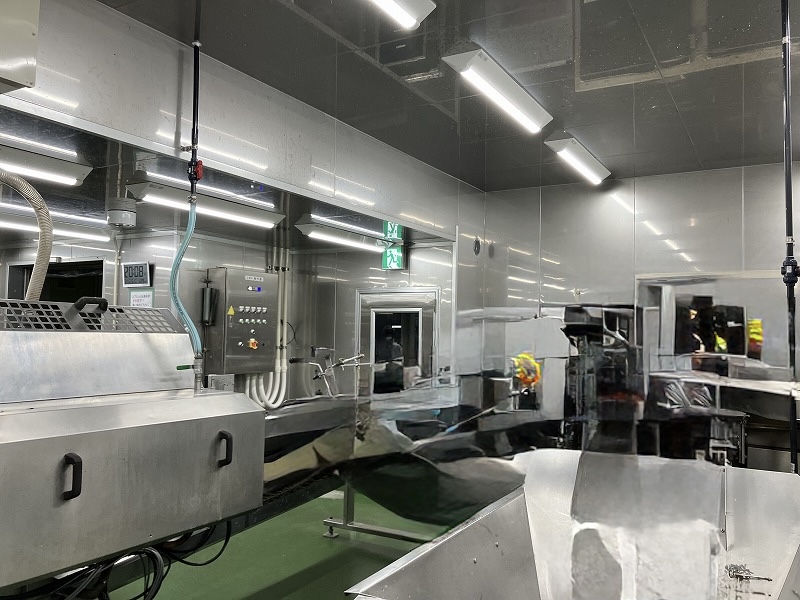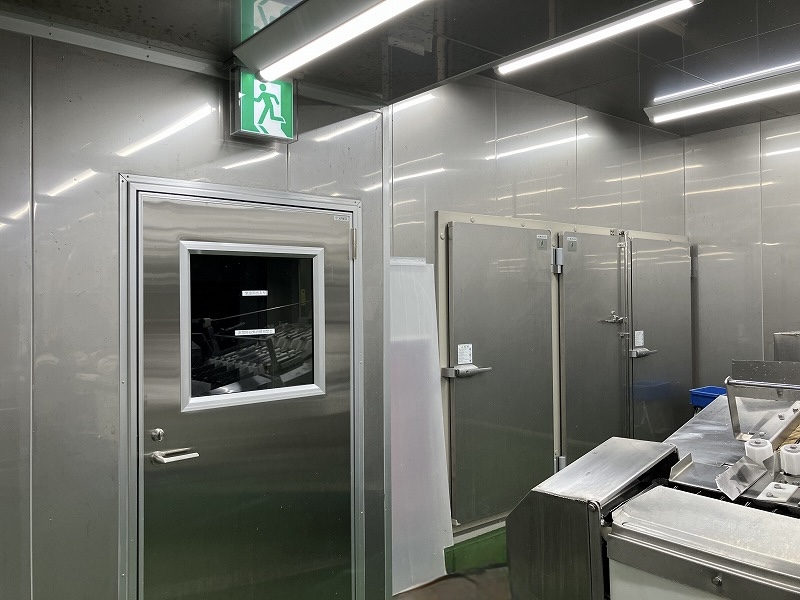 さらに、天井や壁には断熱パネルを採用しました。断熱パネルは食品工場における温度管理の改善や衛生対策に貢献するだけでなく、天井の上を歩行可能にすることでメンテナンスが楽になるというメリットもあります。